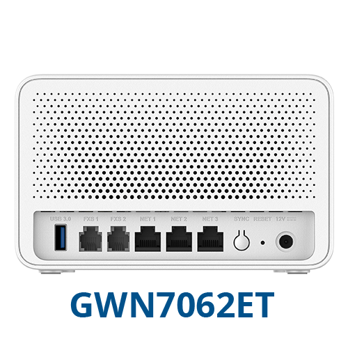 - GWN7062ET: İnternet ve telefon erişimi sağlamak için 3x Gigabit port + 2x FXS port
