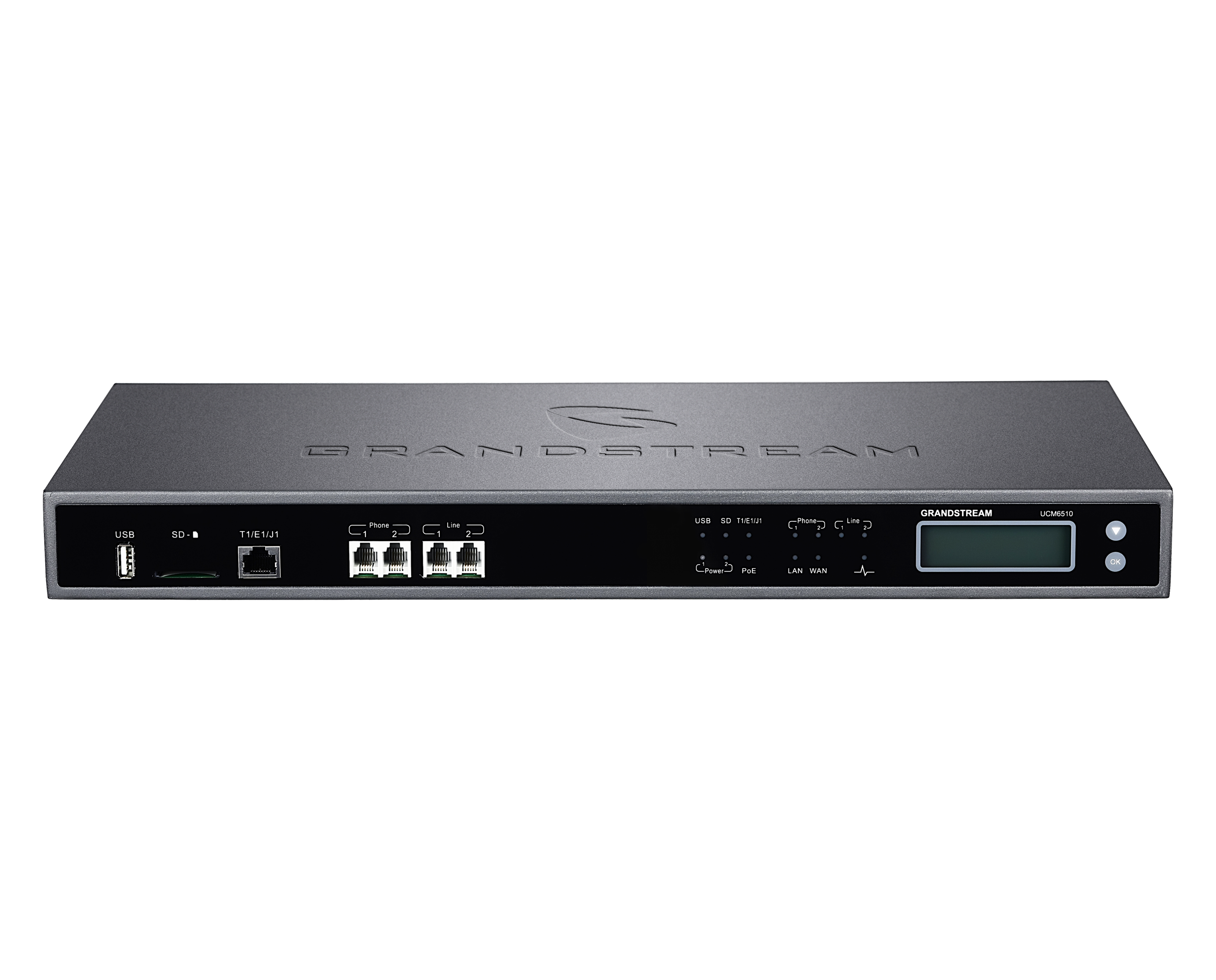 Grandstream UCM6510, iletişim ağınıza eklenerek şirket içi kolayca bağlantı yapılabilir. Bu kurumsal sınıf IP Santral, hepsi lisanssız ve ücretsiz gelişmiş arama yönetimi ve ağ verileri özellikleri ile donatılmıştır. Ölçeklenebilirliği, 2000 kullanıcıya kadar destek verebilen dağıtımlar sunar ve E1, T1 ve J1’i destekler. UCM6510 IP Santral serisi, işletmelerin ses, video, gözetim, veri araçları ve tesis erişim yönetimi gibi çoklu iletişim teknolojilerini uzaktan yönetilebilen ve erişilebilen ortak bir platformda birleştirmelerini sağlar. Özelleştirilebilir çağrı yönlendirme, çok düzeyli IVR’ler, çağrı kuyrukları, otomatik görev tanıtma, çağrı ayrıntı kayıtları, SIP video desteği, e-postaya sesli posta / faks iletme ve daha fazlası gibi özelliklerle UCM6510 IP Santral, eksiksiz birleşik iletişim sunar.