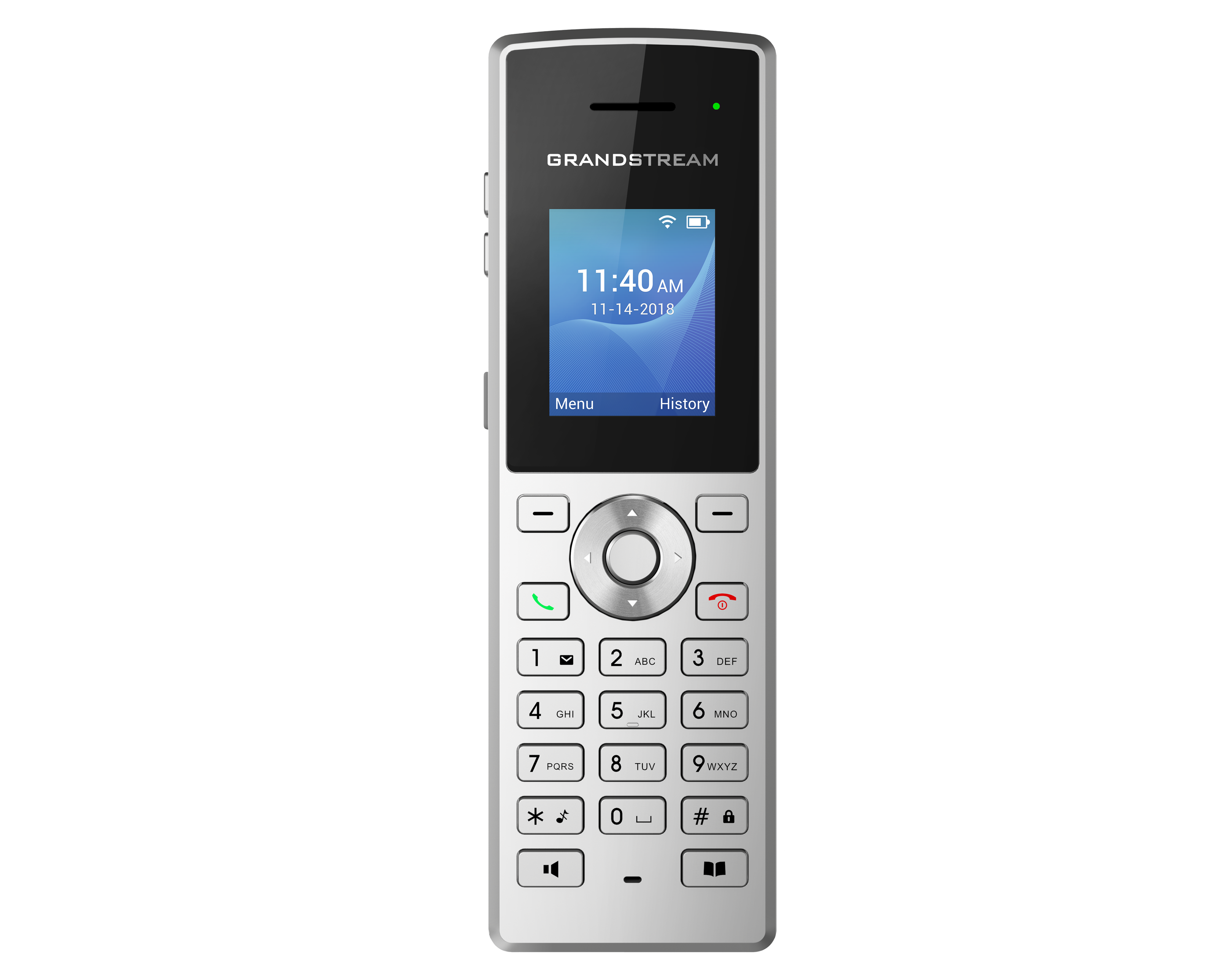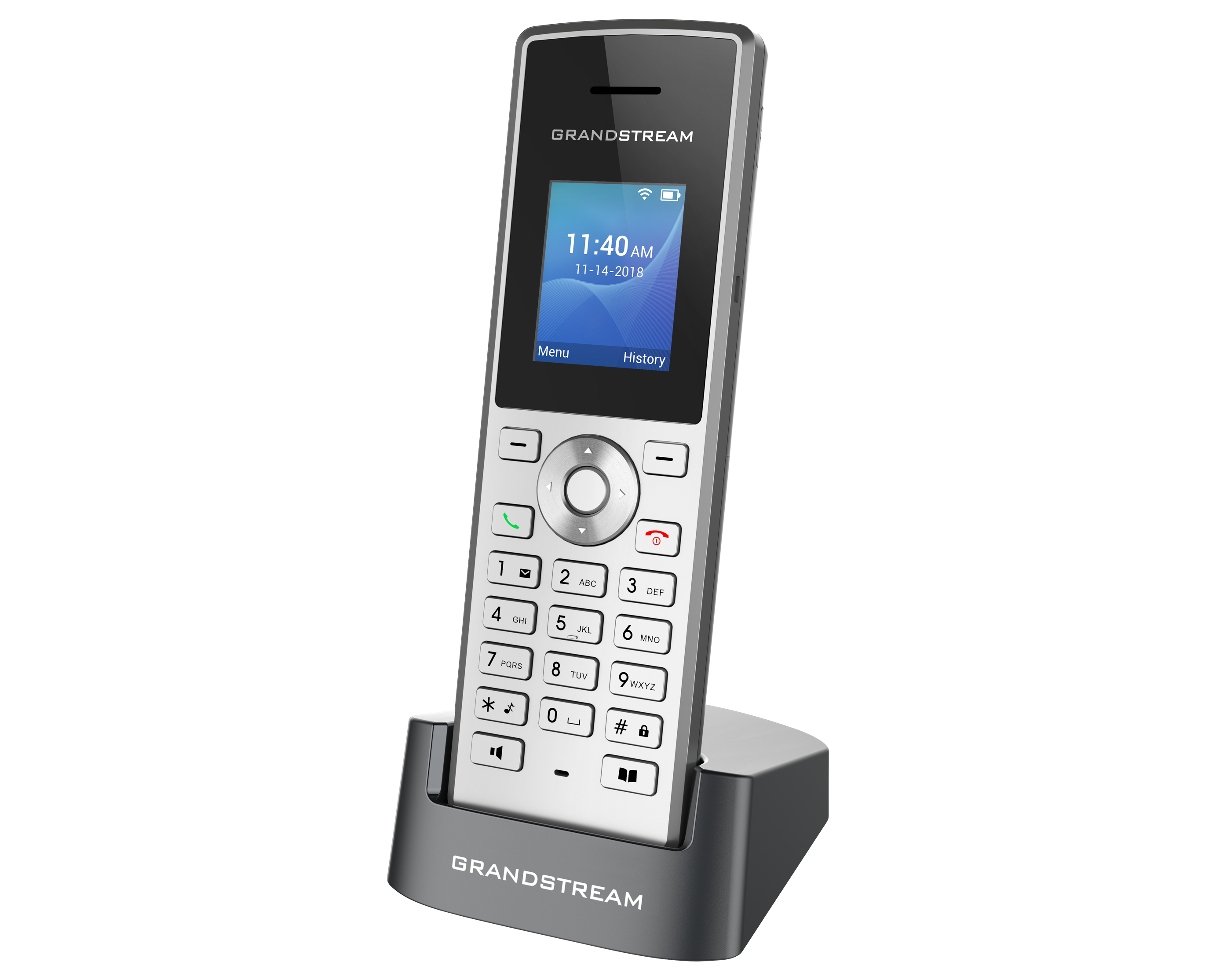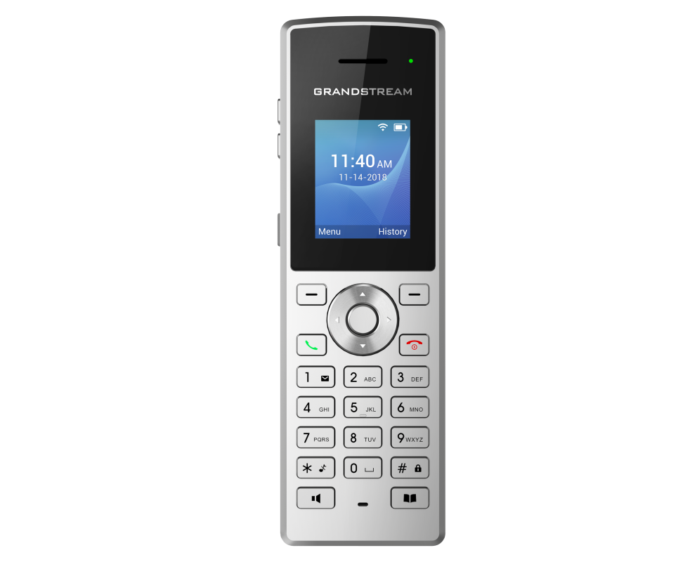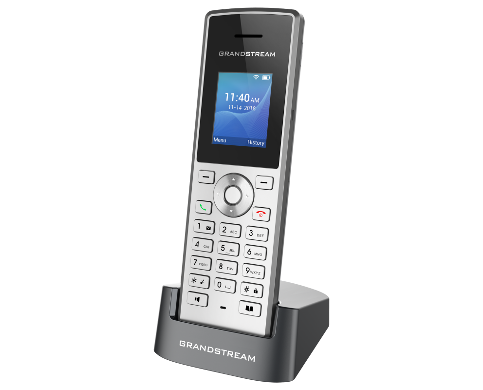 Grandstream WP810, çift bantlı Wi-Fi desteği, 6 saat konuşma süresi ve kullanıcıların herhangi bir Wi-Fi ortamında sorunsuz bir şekilde dolaşmasını sağlayan verimli anten tasarımına sahip uygun fiyatlı bir kablosuz Wi-Fi IP telefonudur.
